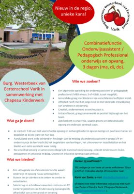 Vacature Combinatiefunctie Onderwijsassistent / Pedagogisch Professional Varik